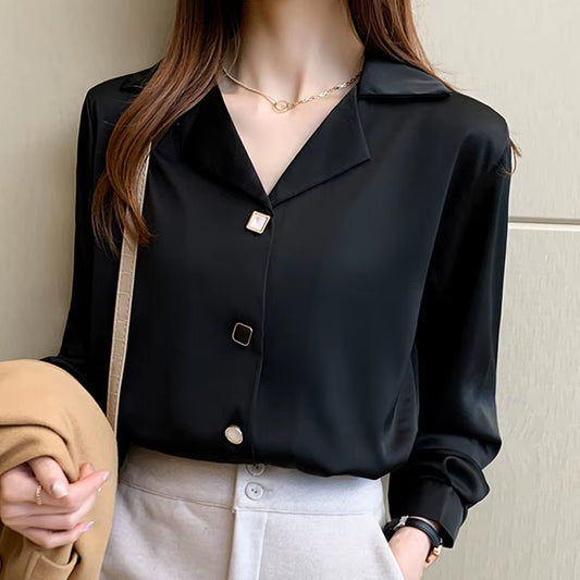 Shirts Women Long Sleeve Shirts Blouses for Women Satin Clothing Shirt Office Lady Solid Silk Shirt Blouse New Fashion Tops